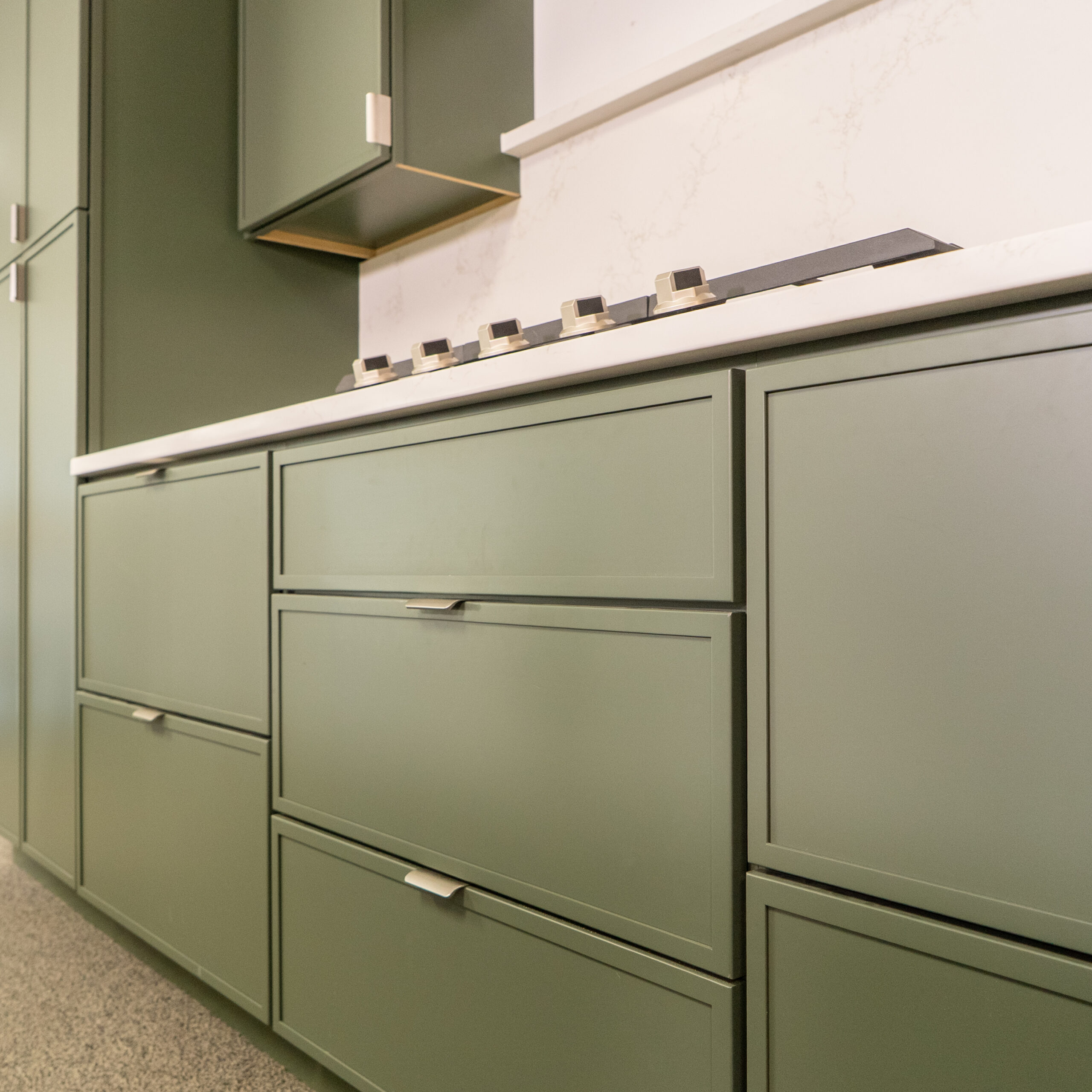 Want cabinets that have a truly timeless charm to them? Then a set of Slim Sage Green Shakers are the perfect choice.